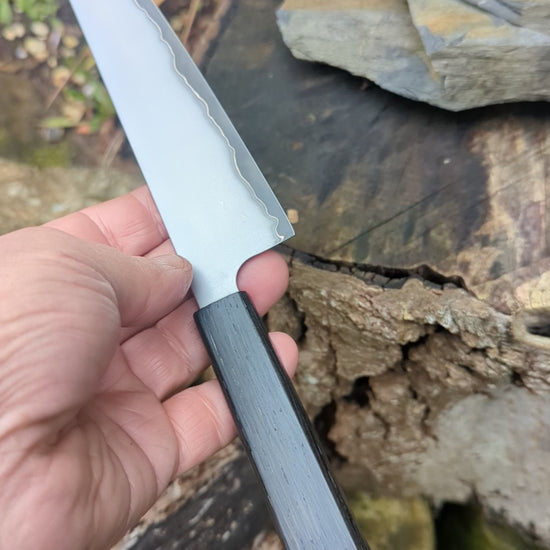 Hand Made 7" Takefu Super Blue Stainless Clad San Mai. 5600 years old Bog Oak handle