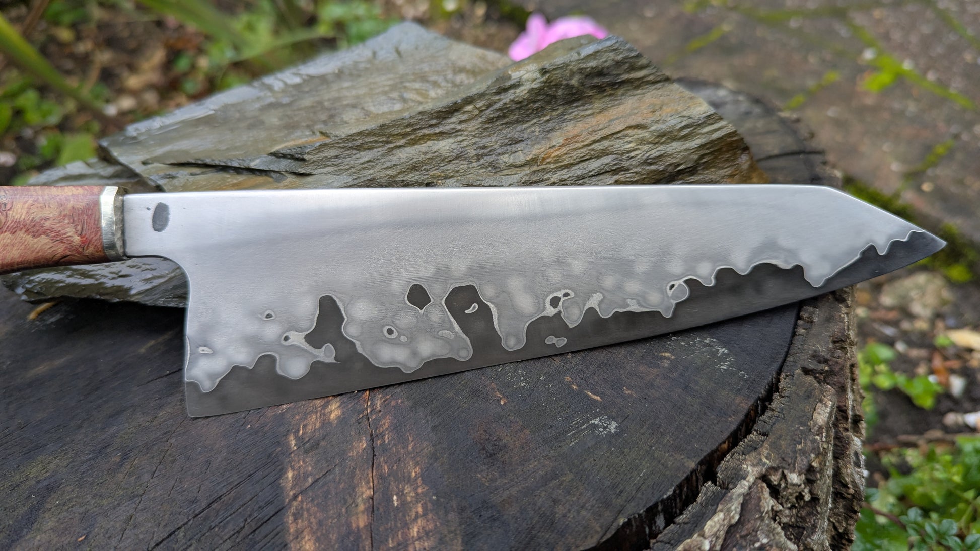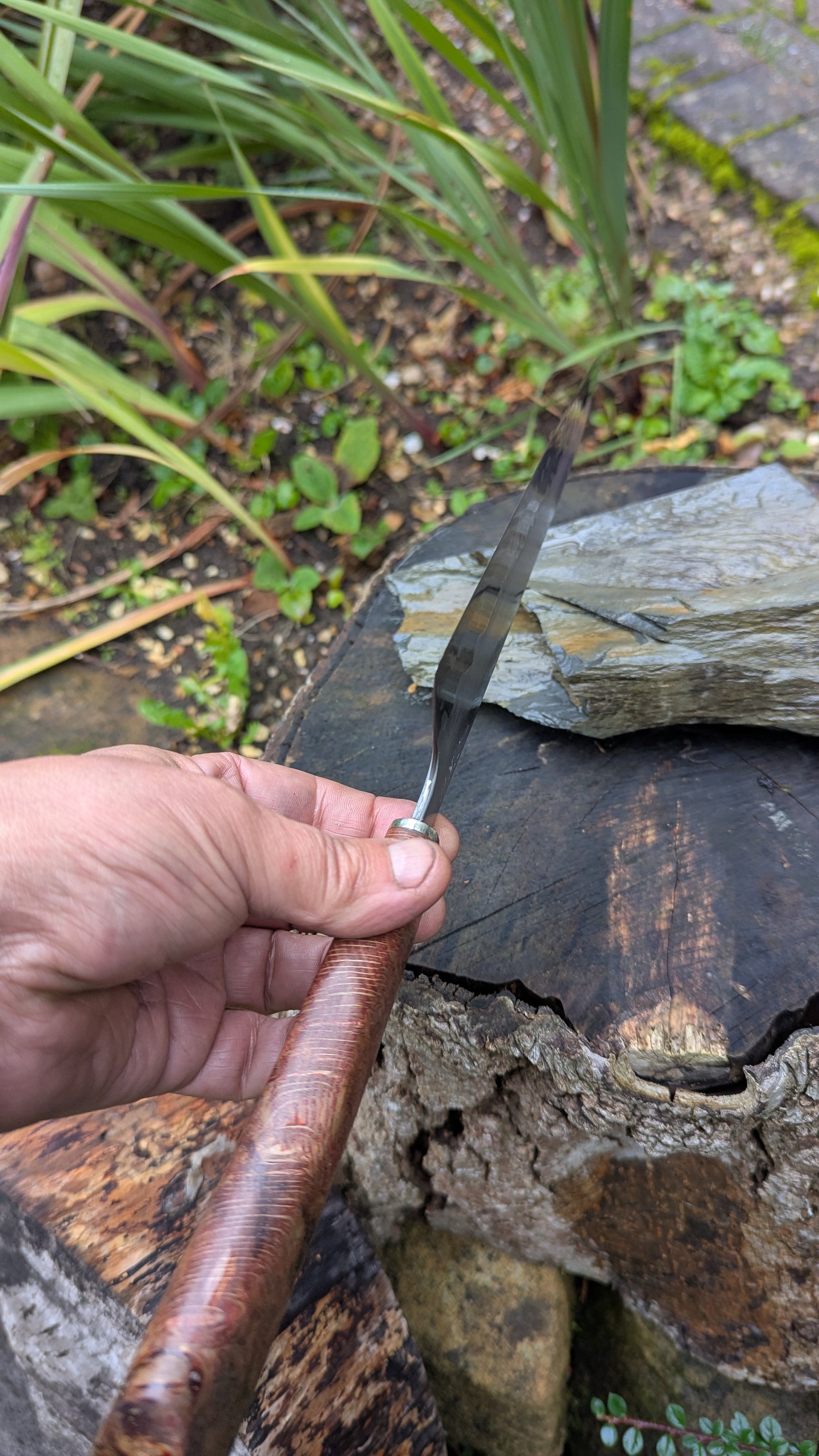 Handle: Japanese style construction. Stabilised mystery burl