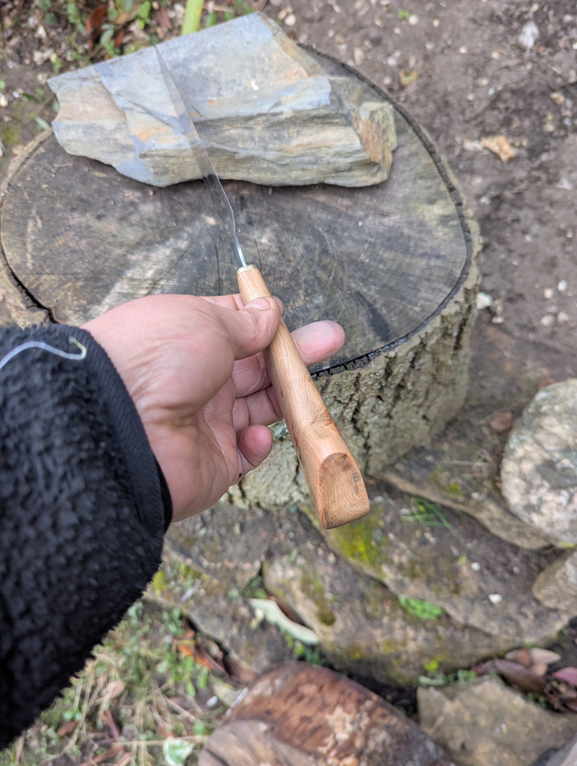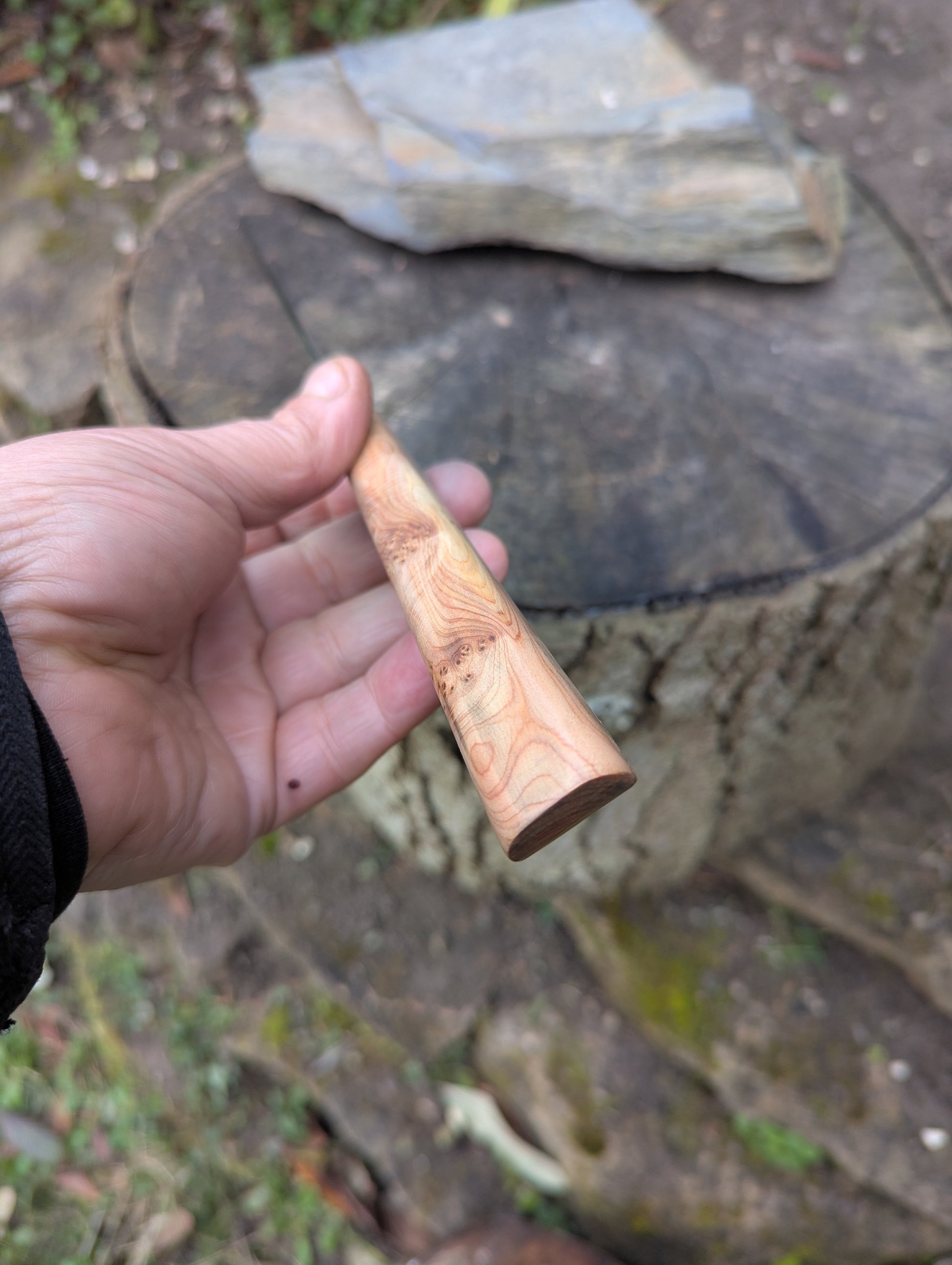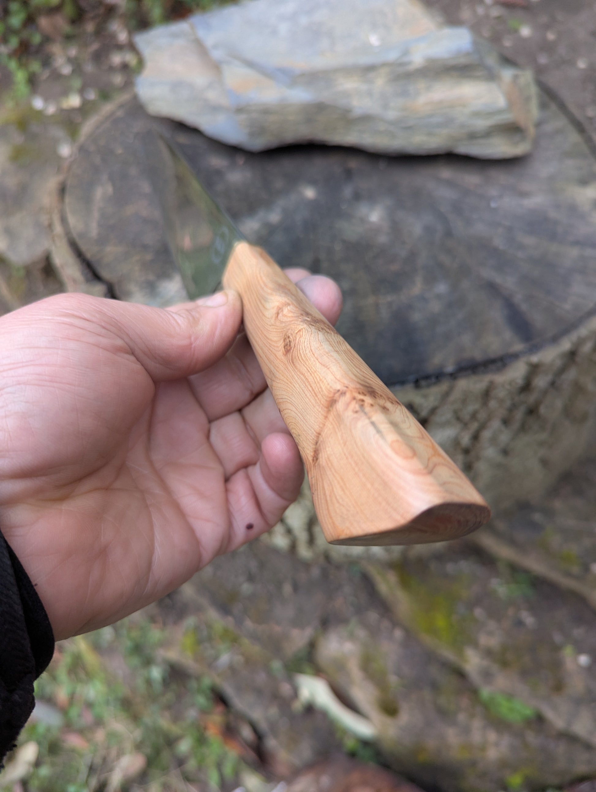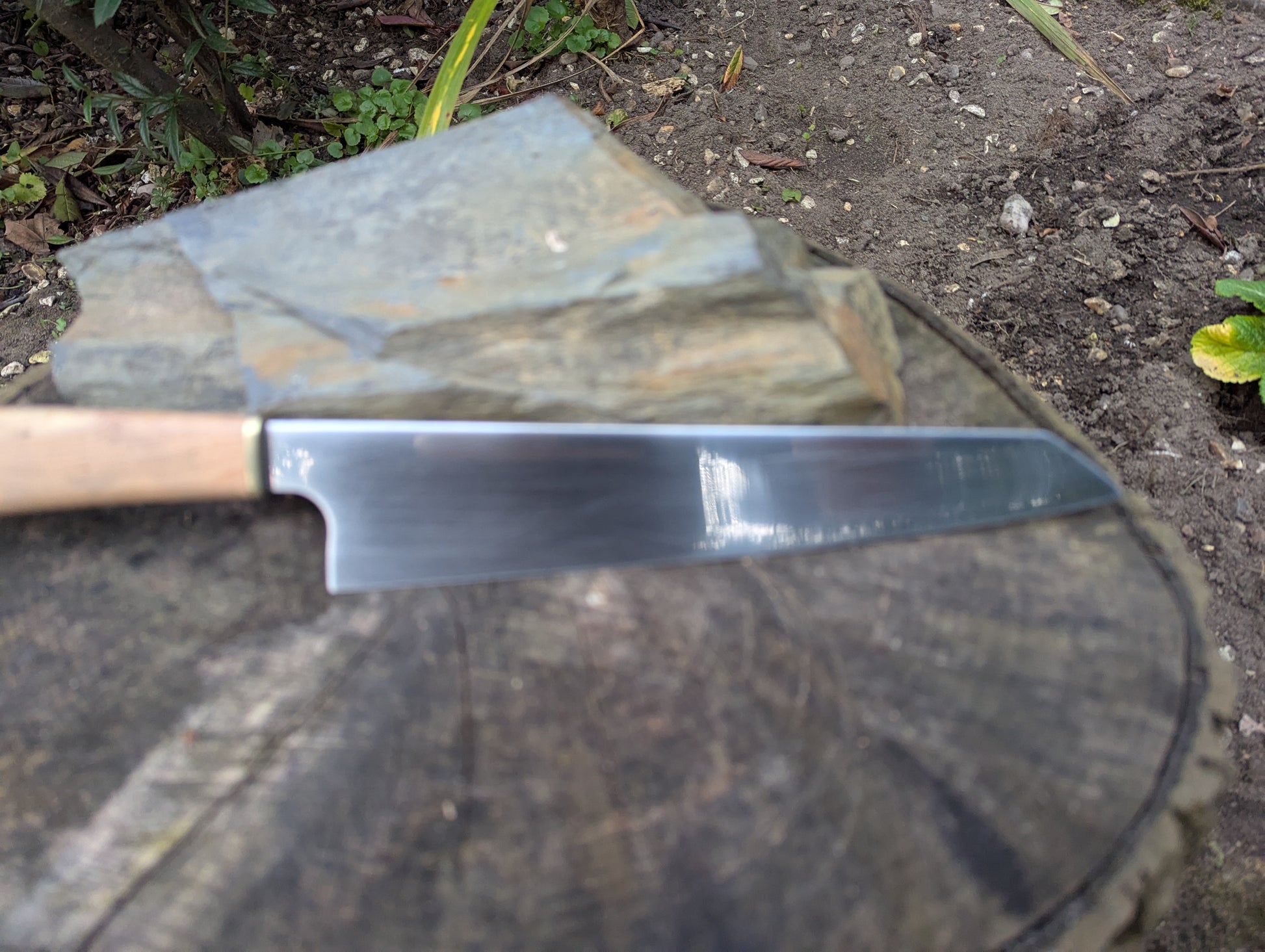 Handle: Fine and tapered Japanese style construction with Nickel silver bolster. Beautiful Cade/Juniper wood from the south of France and it smells amazing too.
