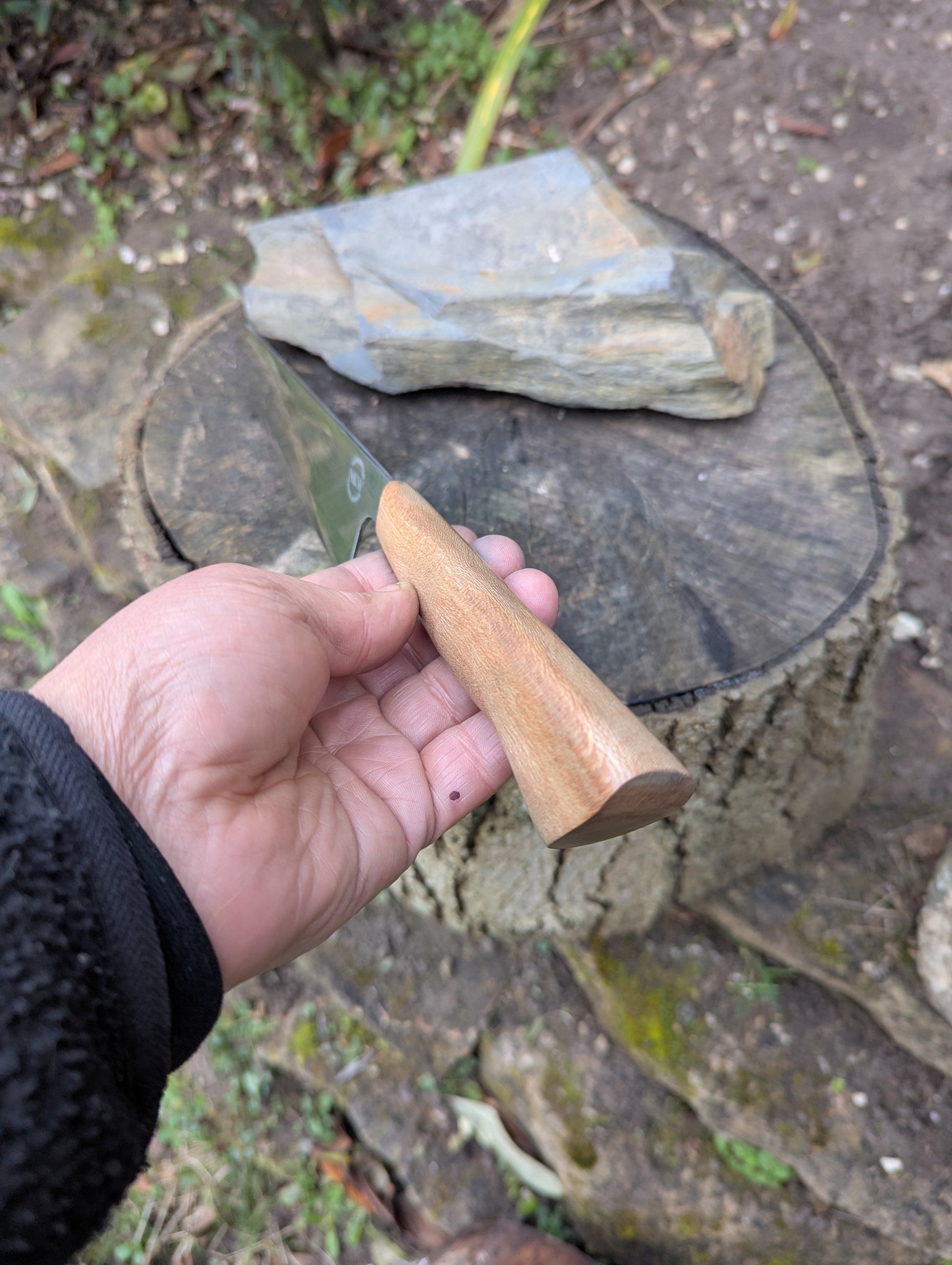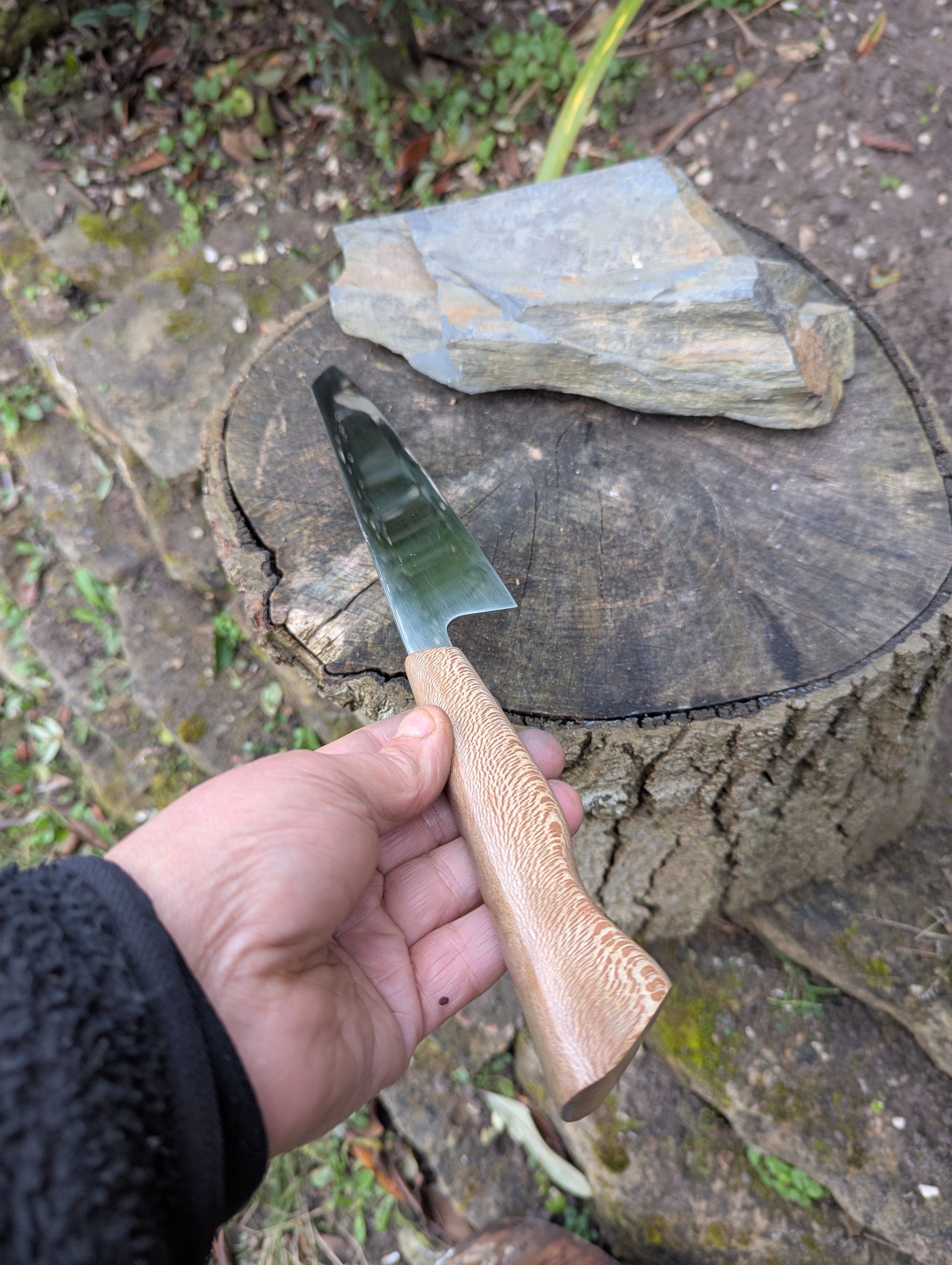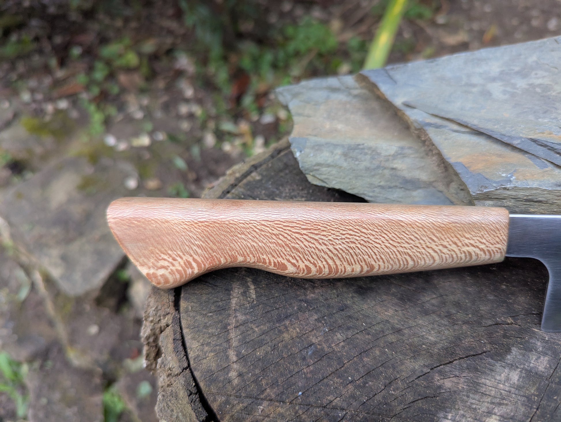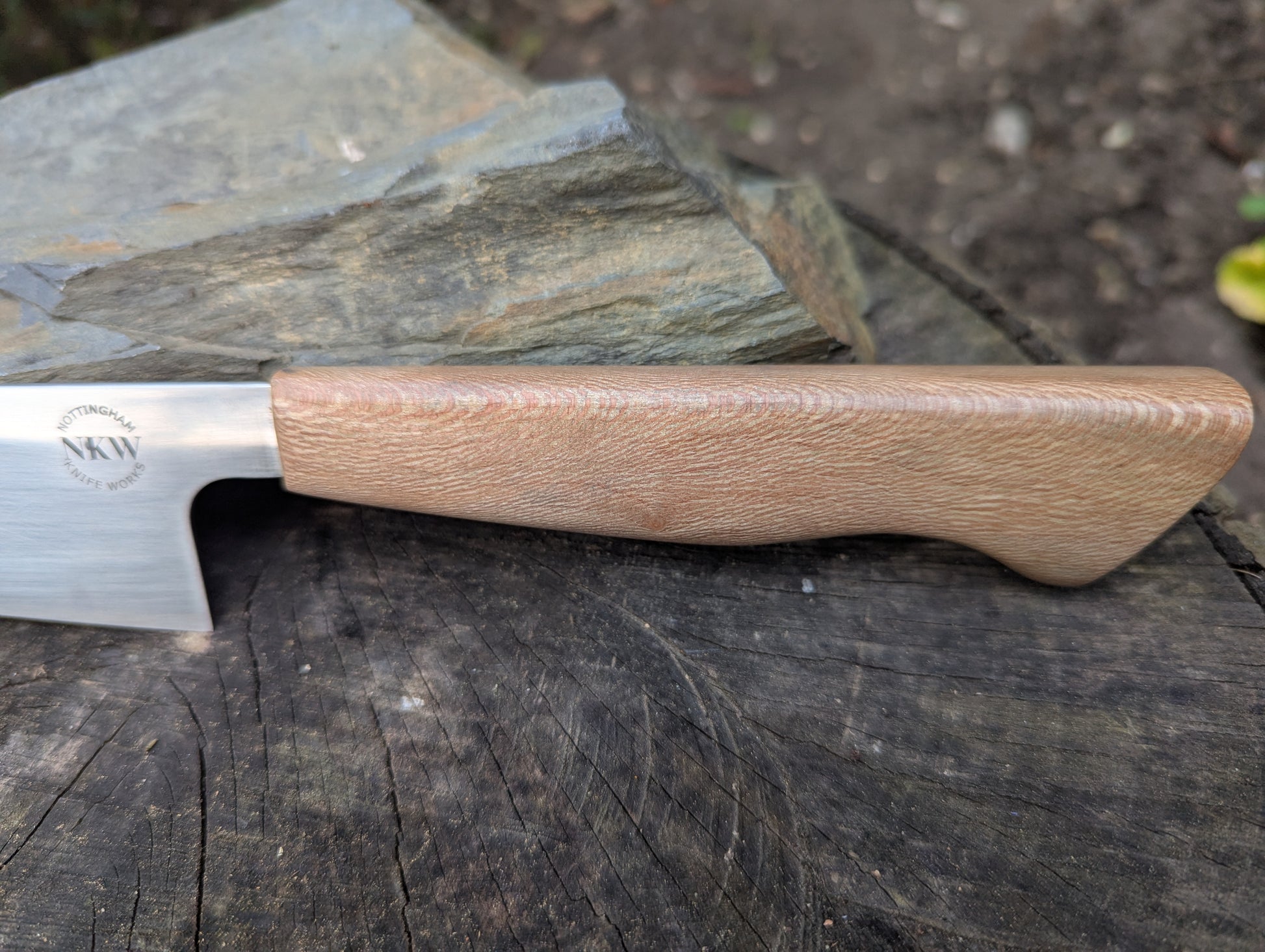 Handle: Fine and tapered Japanese style construction. Beautiful London plane also called Lace wood from a UK source so not the tropical Lacewood.