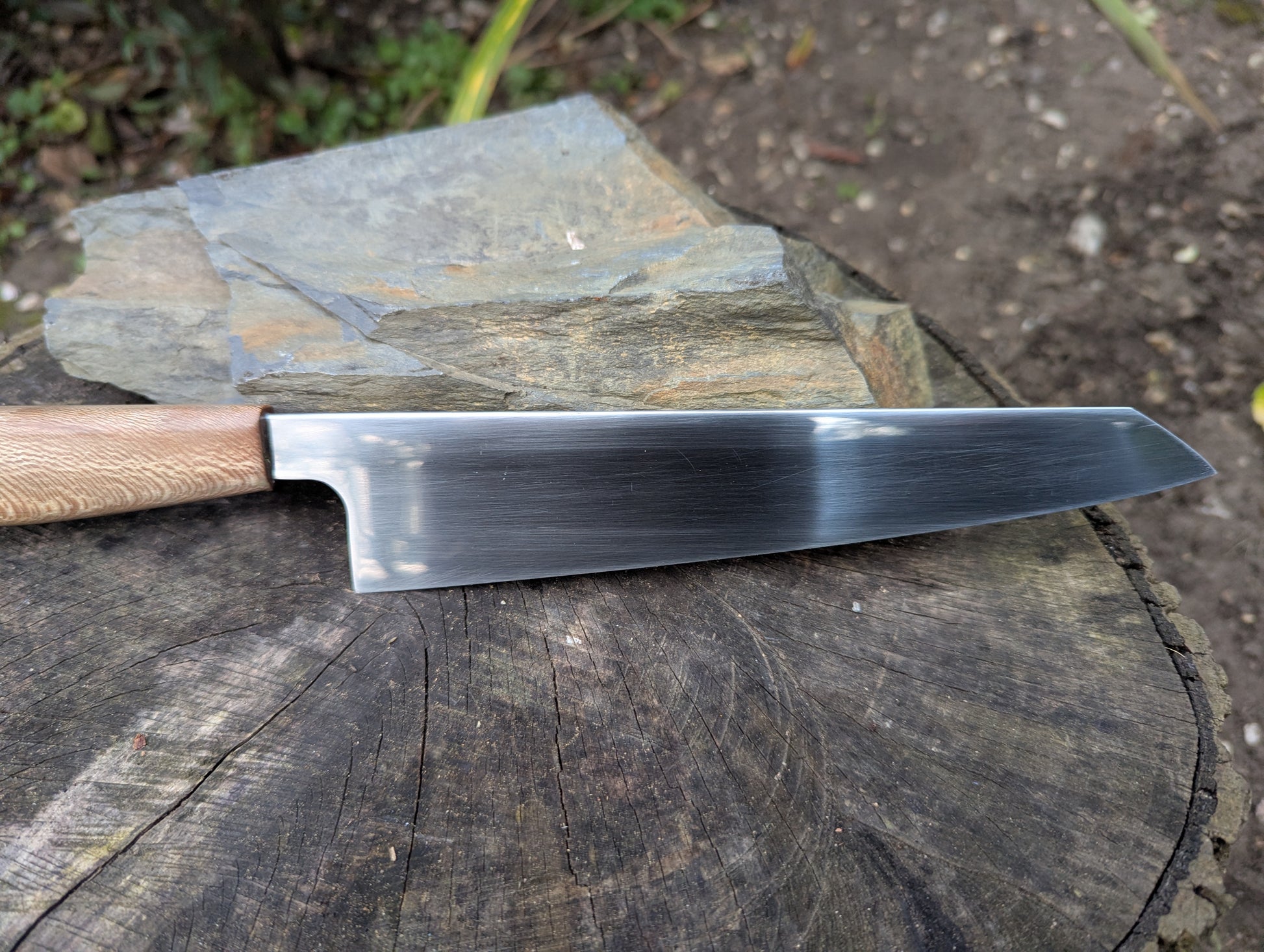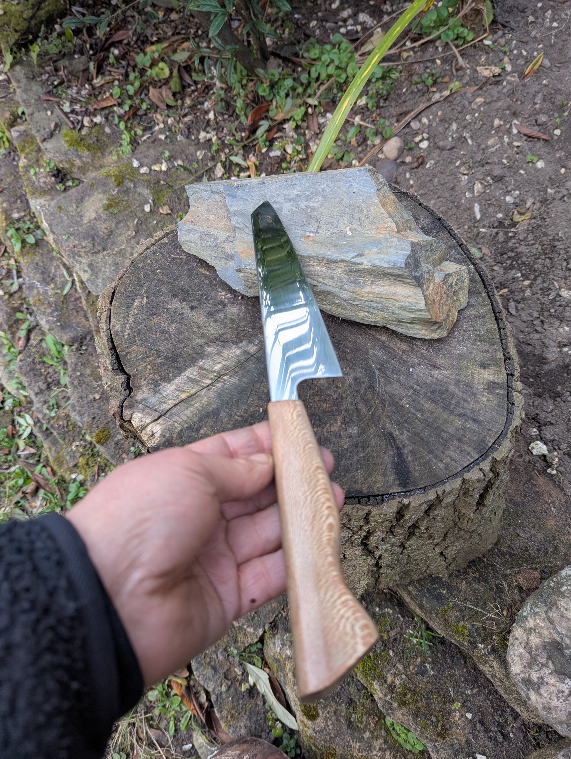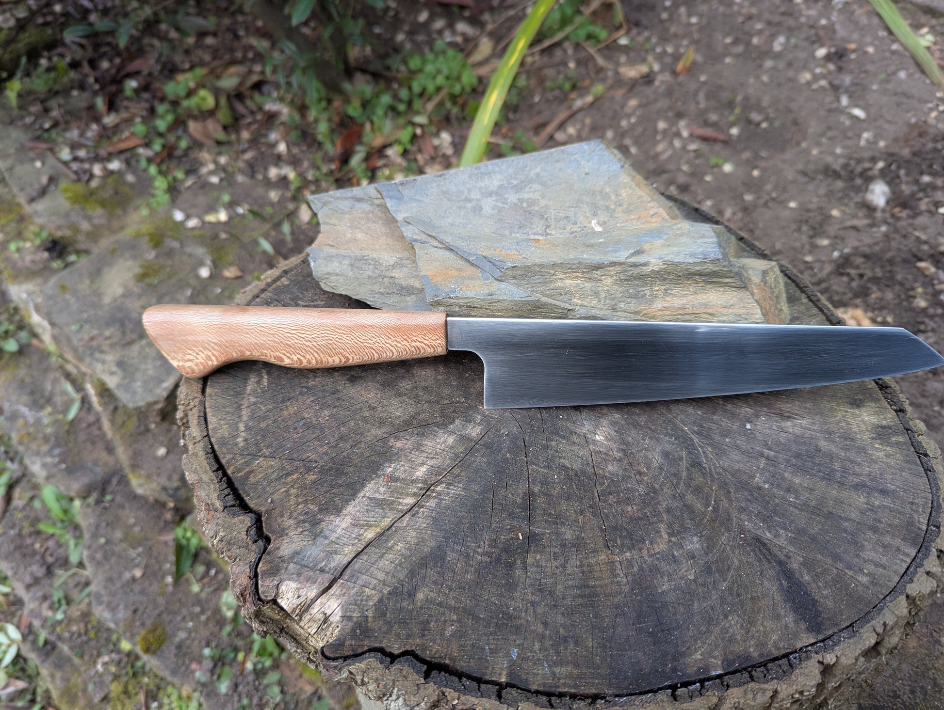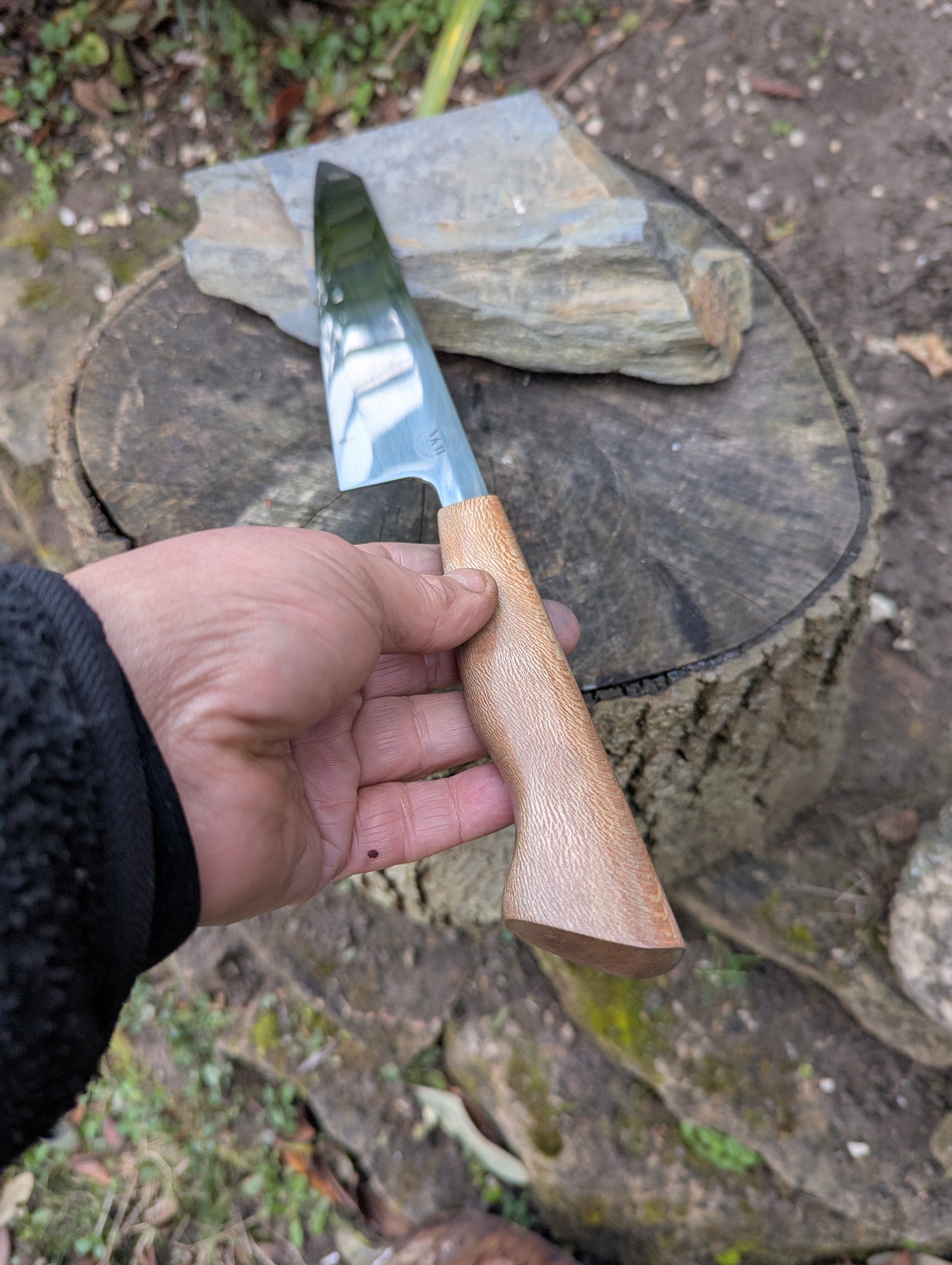 Handle: Fine and tapered Japanese style construction. Beautiful London plane also called Lace wood from a UK source so not the tropical Lacewood.