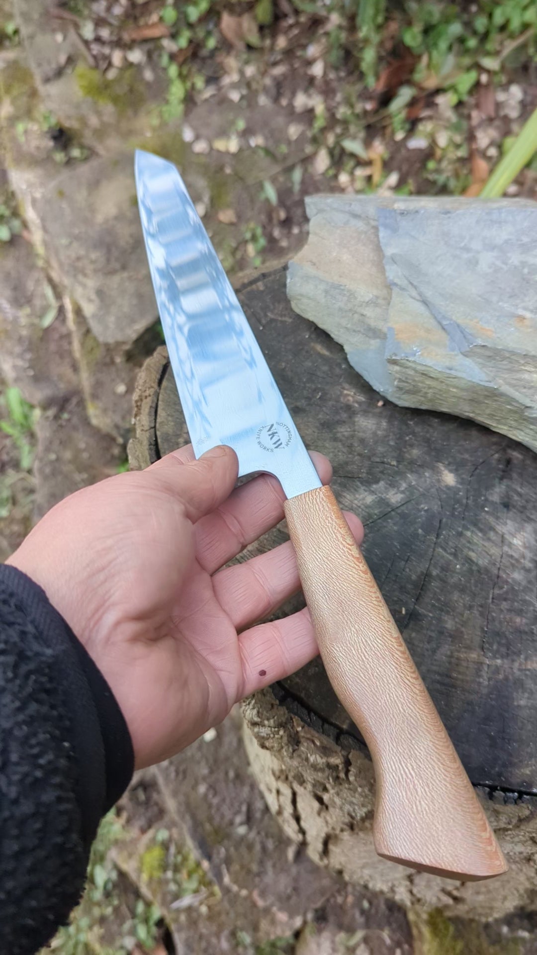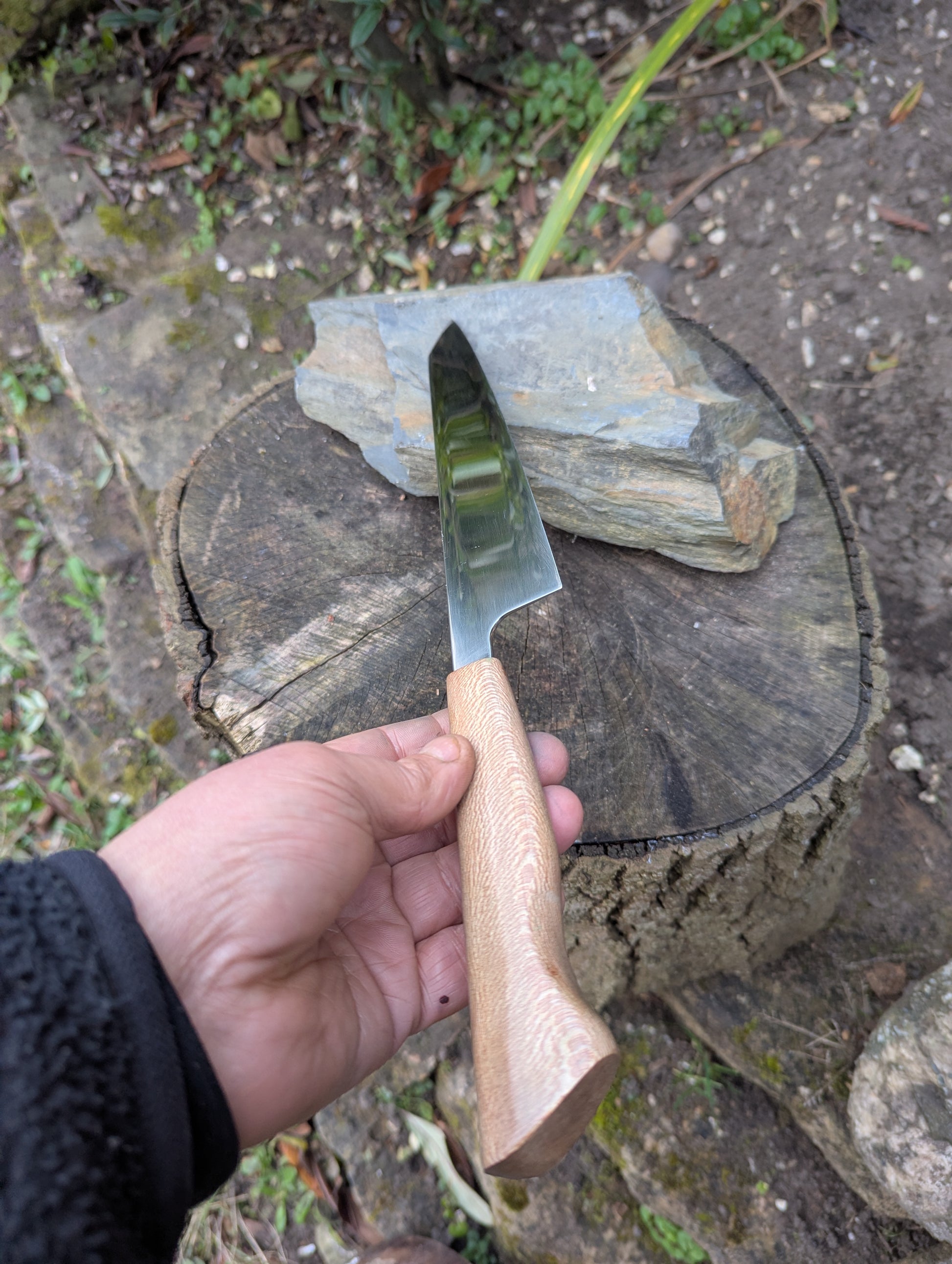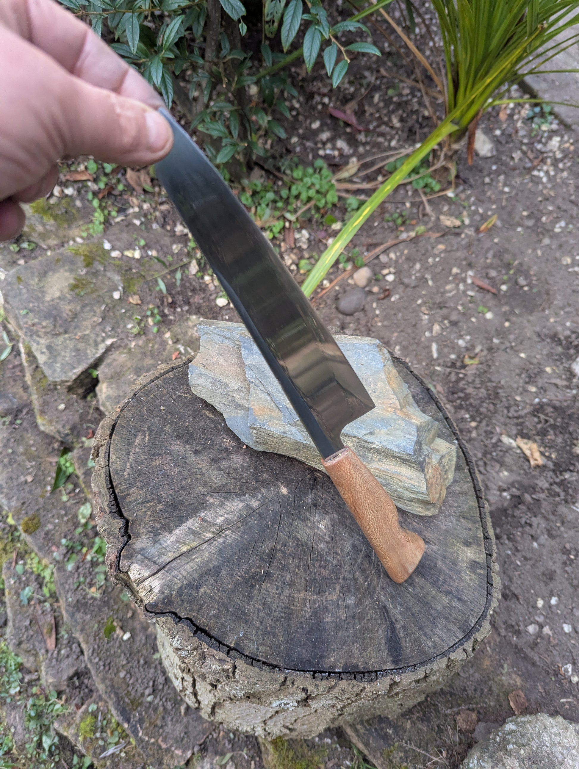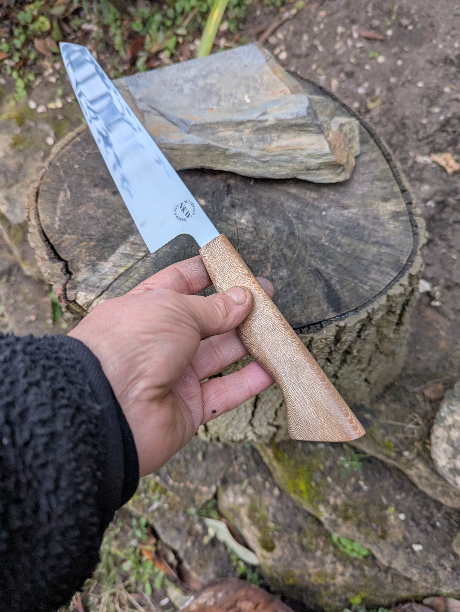 Handle: Fine and tapered Japanese style construction. Beautiful London plane also called Lace wood from a UK source so not the tropical Lacewood.