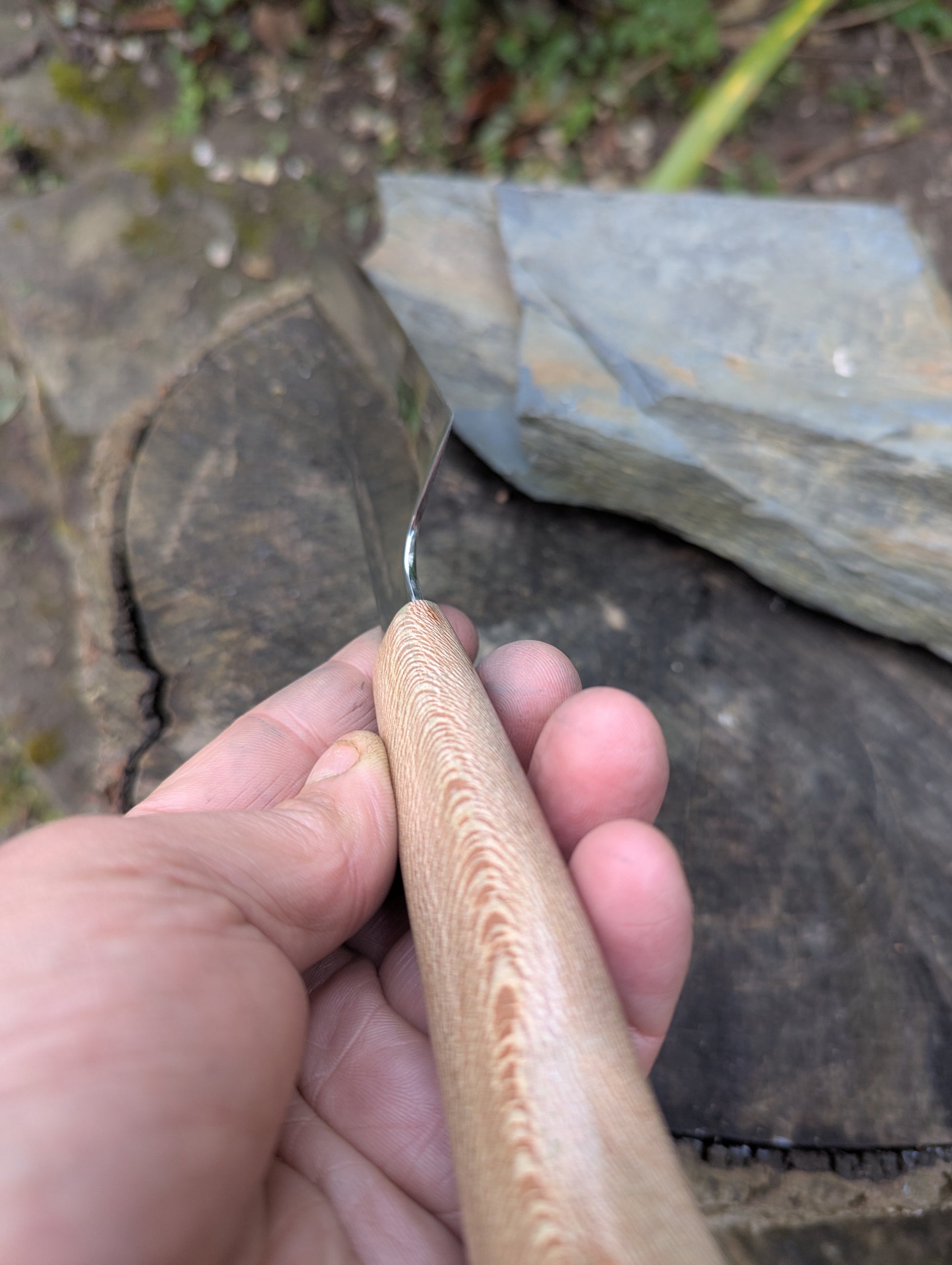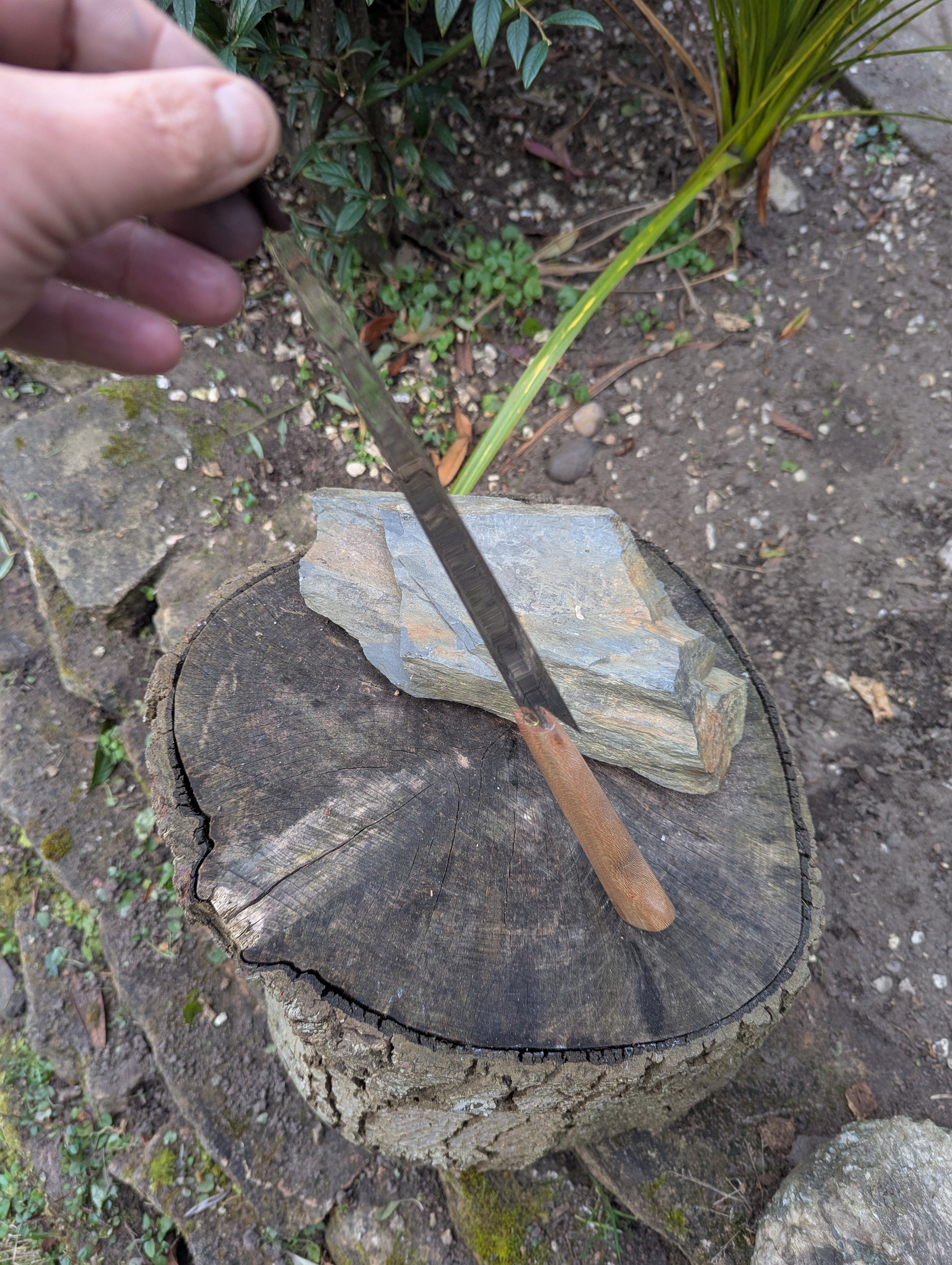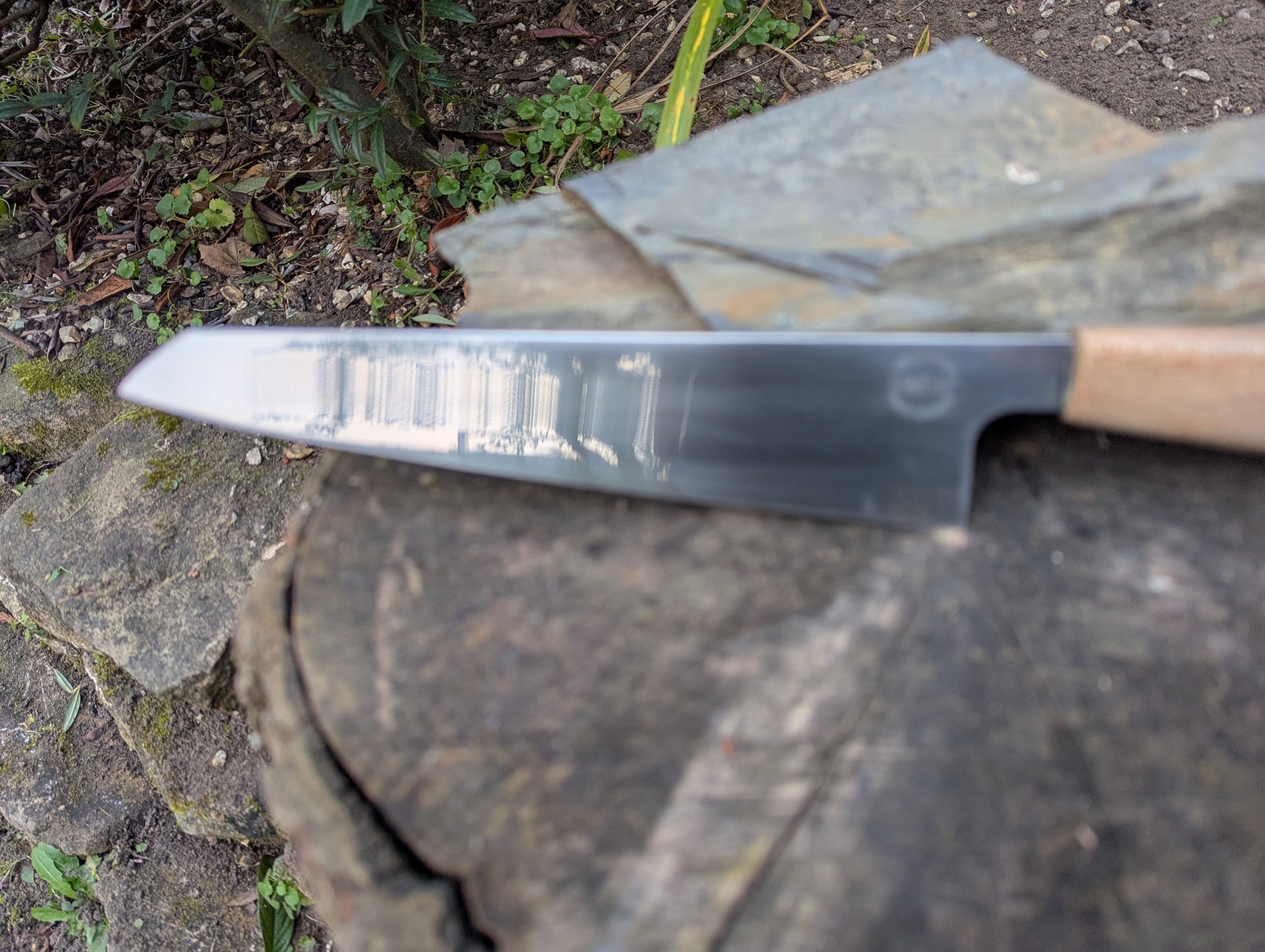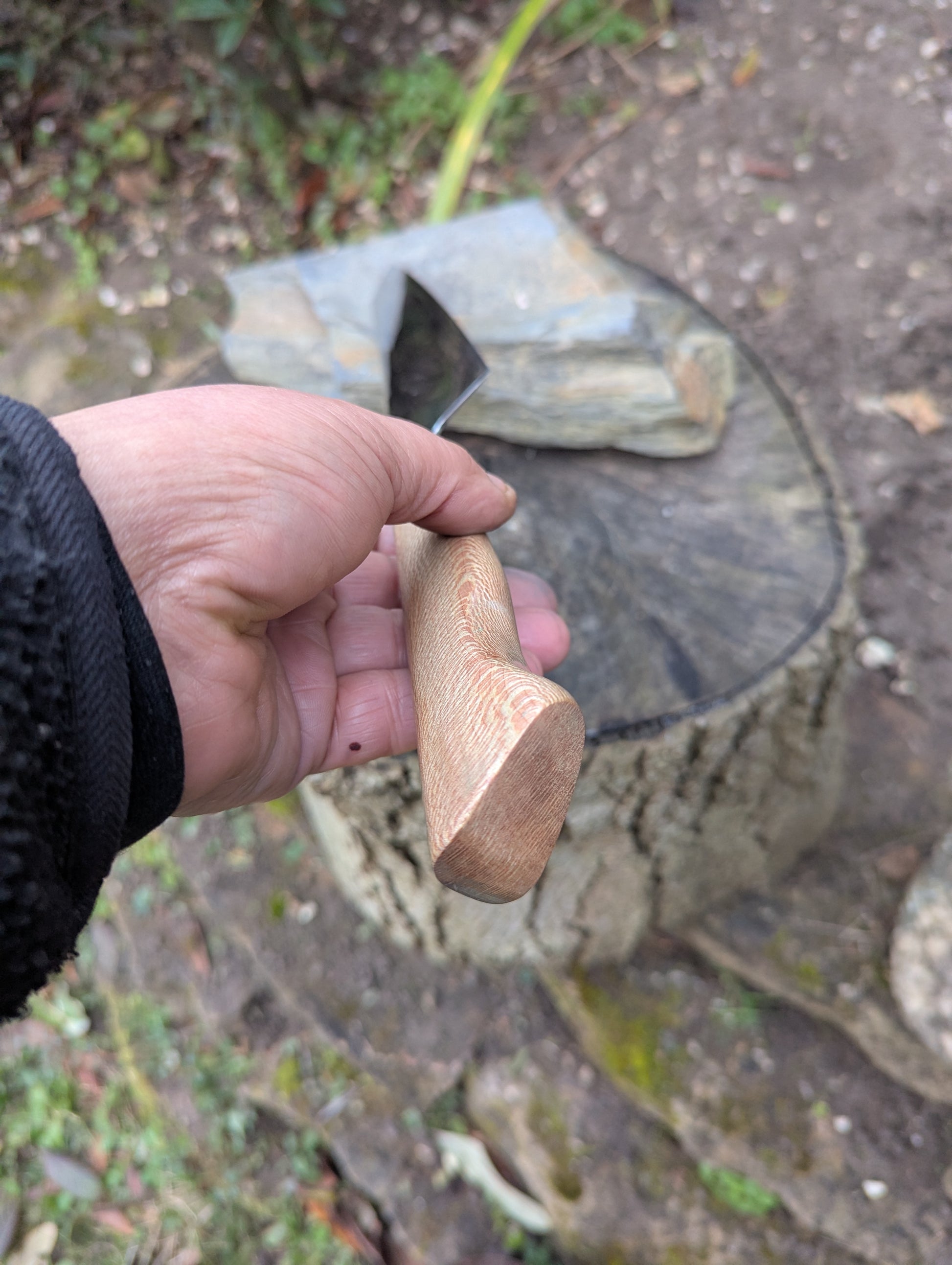 Handle: Fine and tapered Japanese style construction. Beautiful London plane also called Lace wood from a UK source so not the tropical Lacewood.