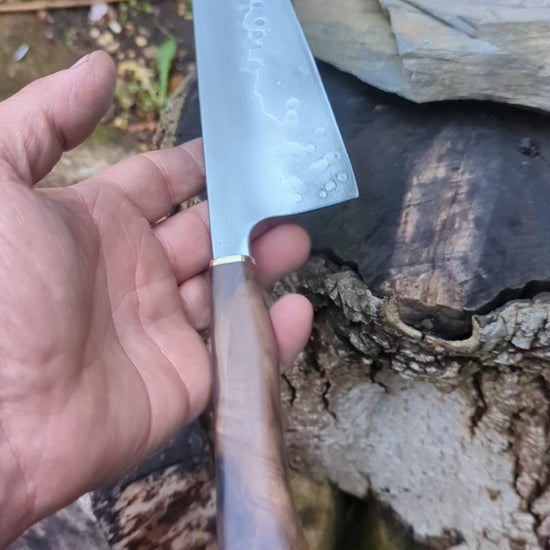 Hand made 8" Takefu Super Blue Stainless Clad San Mai. Walnut Handle